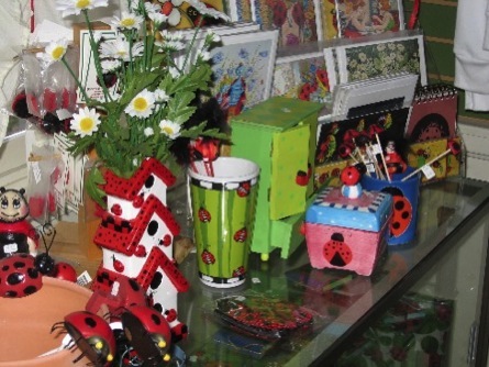 To share the joy the resort created "The Ladybug" gift shop. Located in the reception area of the main lodge, the modest collection of ladybugs and souvenirs offered for sale are all truly unique and will always put a smile on anyone's face. "The Ladybug" gift shop is open daily during normal business hours throughout the summer season.